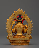 Each symbol in the Buddhist tradition honors Chenrezig as the embodiment of all enlightened compassion. With his recognizable four arms, the deity is depicted in this handcrafted statue, signifying his ability to assist sentient beings in all directions. Love, kindness, and spiritual awakening are symbolized by the lotus position, the sacred tools in his hands, and the compassionate look, all of which are highlighted by the exquisite craftsmanship. This statue promotes attention and inner calm, making it a thoughtful gift or a personal spiritual item.