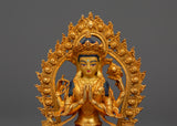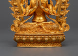 Gold Plated Chenrezig Statue in copper | Tibetan Bodhisattva of Compassion
