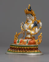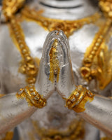The Mini Chenrezig Sculpture is a machine-molded portrayal of one of the Buddhist pantheon's most beloved bodhisattvas. This tiny statue, made of a durable copper body and embellished with gold and acrylic paintings, captures the essence of Chenrezig, the epitome of compassion.