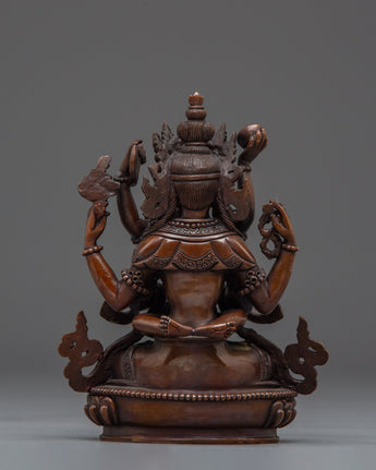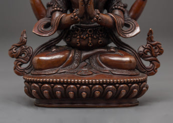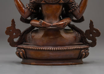 This Red Chenrezig with Vajrayogini Oxidized Statue measures 5.9” (15 cm) in height and 4.7” (12 cm) at the base and weighs 0.84 kg. Crafted from oxidized copper, it showcases traditional Nepali artistry with a rich, antique-like finish. This statue makes a meaningful addition to meditation spaces, altars, or spiritual collections, symbolizing deep compassion and transformative energy.