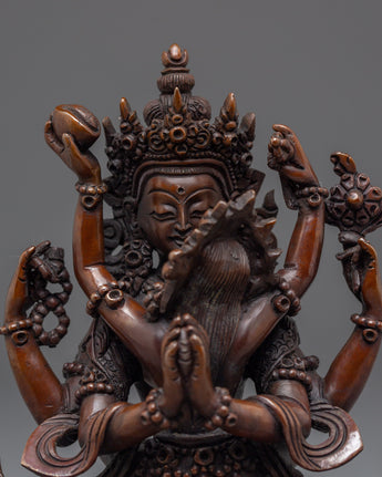 Red Chenrezig with consort Oxidized Statue | Union of compassion and wisdom
