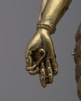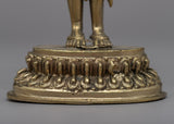 Experience the divine presence of the Standing Chenresig Statue, a mesmerizing work of art handcrafted on a brass body. The noble deity, Chenresig, stands majestically upon a delicate lotus base, emanating compassion and boundless love. With serene facial features and graceful postures, the statue captures the essence of Chenresig's compassionate nature. The intricate details and smooth contours bring this sacred figure to life, reflecting the skilled craftsmanship and devotion of the artisans. Let the presence of Chenresig fill your space with tranquility and compassion, reminding you of the infinite compassion that resides within each of us.