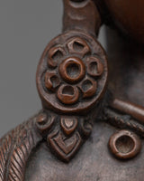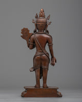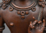 Behold the Standing Chenrezig Statue's mesmerizing beauty in the realm of divine artistry. This masterpiece, which was meticulously crafted on an oxidized copper body, captures the timeless grace and elegance of Chenrezig, the personification of compassion. Each exquisite detail of this revered deity, which stands tall atop a magnificent lotus base, perfectly captures its spiritual essence. The statue's oxidized finish gives it a mystical quality that conveys a sense of depth and antiquity. Allow Chenrezig's compassionate energy to permeate your being as you admire this beautiful creation, igniting a flame of compassion and love inside of you.