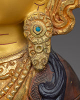 This Handmade Chenrezig Statue for altars and sacred spaces stands 8.7” (22 cm) in height, with a base width of 6.1” (15.5 cm), and weighs 1.52 kg. Crafted from a copper body and adorned with 24K gold gilding, intricate gold and acrylic paintings, and inlaid gemstones, it is expertly handcrafted by skilled Nepali artisans. Reflecting both spiritual significance and traditional craftsmanship, this statue makes a meaningful addition to altars, meditation areas, or personal sacred collections.