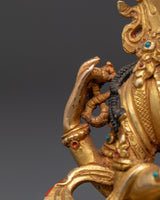 Chenrezig is respected in Tibetan Buddhism for embodying compassion and mercy. This gold-plated deity statue is not only a stunning work of art, but it also serves as a powerful spiritual tool for enhancing your meditation practice and cultivating calmness and mindfulness. The coral and turquoise stones used in the design have significance in Tibetan culture, representing healing energy and inner serenity.