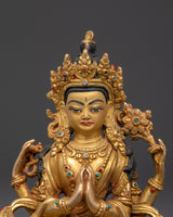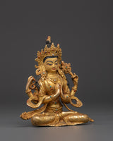 Tibetan Chenrezig Deity Statue | Handcrafted Golden Buddha of Compassion