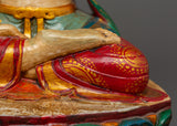This Chenrezig Statue is a hand-carved wooden artwork that has been meticulously painted in vivid acrylic colors. With a height of 33 cm and a base width of 23 cm, this sacred Buddhist deity sculpture weighs 1.232 kg. Every intricate detail, from the magnificent crown to the beautifully painted robes, depicts traditional Tibetan workmanship, conveying a sense of calm, compassion, and divine protection in any environment. This sculpture, created by expert Nepalese artisans, symbolizes the spiritual traditions of Himalayan Buddhism and makes a meaningful addition to altars, meditation places, or sacred collections.