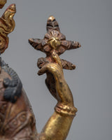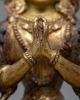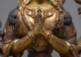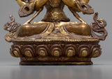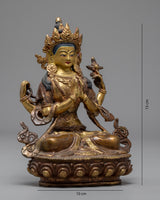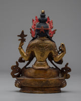 In our illustration, a deity is shown holding a lotus in his upper-left hand and a crystal rosary in his upper-right hand. He also has a wish-fulfilling diamond in each of his lower hands. This statue can be utilized in a variety of ways, including your usual yoga or meditation routines, additional Vajrayana practices, and even a number of indoor pursuits. A practitioner like you will receive a priceless gift from Nepal in the form of this Himalayan art.