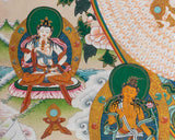 Welcome the divine presence of compassion into your space with our Sacred 1000-Armed Chenrezig Thangka Print. This exquisite piece of Tibetan art is a visual symphony that captures the essence of Avalokiteshvara, the bodhisattva of infinite compassion. The Thangka, meticulously crafted with intricate details and vibrant colors, portrays Chenrezig with a thousand arms, each symbolizing a unique aspect of boundless compassion. This sacred artwork serves as a portal to a realm of spiritual serenity, making it an ideal addition to meditation spaces, altars, or any area where you seek tranquility. The rich cultural heritage and profound symbolism embedded in this Thangka Print create an immersive experience, inviting you to connect with the universal compassion embodied by Chenrezig. Elevate your surroundings and spiritual practice with the timeless beauty and sacred energy of our 1000-Armed Chenrezig Thangka Print.