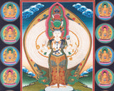 1000 Armed Chenrezig Thangka Print Surrounded by Celestial Deities | Traditional Buddhist Artwork