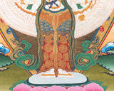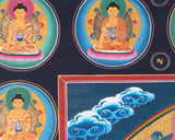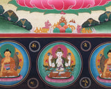 Step into a realm of divine presence and spiritual magnificence with the awe-inspiring 1000 Armed Chenrezig Thangka Print surrounded by a celestial assembly of other deities. This remarkable artwork captivates the heart and mind, drawing you into a sacred tapestry of enlightened energies. Amidst the intricate brushstrokes and vibrant hues, the thousand arms of Chenrezig radiate compassion and embody the boundless capacity to alleviate suffering. As your gaze extends beyond, you'll find a divine ensemble of deities, each exuding their unique blessings and wisdom. Together, they create a harmonious symphony of spiritual energies, guiding you towards inner awakening and profound connection. This Thangka print serves as a profound reminder of the interconnectedness of all beings and the power of compassion to transform lives. Allow it to adorn your sacred space, inviting divine presence and inspiration to permeate your spiritual journey. May the divine grace of these enlightened deities illuminate your path and foster a deep sense of reverence, compassion, and spiritual wholeness within your being.
