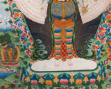 Introducing Avalokiteshvara 1000 Arms form, the bodhisattva of compassion, in this high-quality digital Newari paubha print. Each arm symbolizes the deity's boundless compassion and ability to help sentient beings in need. Adorned with intricate gold and jewel-toned details, Chenrezig's serene countenance exudes a peaceful energy that will elevate any space. The iconic attributes of this beloved deity, such as the lotus flower and wish-fulfilling jewel, are beautifully rendered in this print, adding to its significance as a sacred work of art. Bring the divine presence of Chenrezig into your spiritual practice or home décor collection with this stunning paubha print.