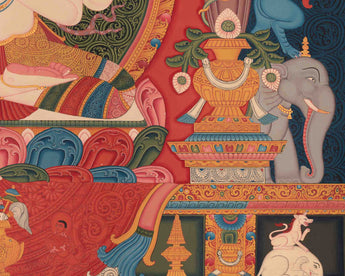 As requested for consecrations/blessings, we can take thangka to Monasteries/Rinpoches from nearby Boudha Stupa. We kindly ask you to offer $50 for the monasteries for blessings/consecration services.