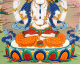 Chenrezig's Thangka Print for Inner Tranquility | The Bodhisattva of Compassion | Art Illuminating Your Space