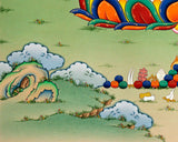 "Chenrezig's Thangka Print for Inner Tranquility" beautifully encapsulates the divine essence of the Bodhisattva of Compassion, Chenrezig (Avalokiteshvara). This masterpiece invites you into a realm of profound serenity and compassion. Chenrezig's benevolent presence, depicted in intricate detail, radiates with boundless love and wisdom, offering solace and healing to all who contemplate it. The Thangka becomes a portal to inner tranquility, a gentle reminder of the transformative power of compassion in our lives. As you gaze upon this artwork, you'll feel an embrace of spiritual energy that guides you towards inner peace and a deeper connection with the world. "Chenrezig's Thangka Print for Inner Tranquility" is not just a piece of art; it's a sacred journey into the heart of compassion, an enduring source of inspiration, and a reflection of the Bodhisattva's timeless teachings.