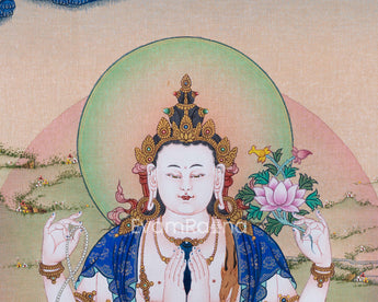 High-Quality Cotton Canvas Print For Chenrezig Meditation | Himalayan Buddha Of Compassion