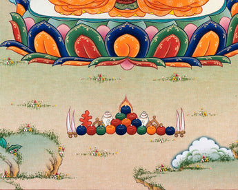 As requested for consecrations/blessings, we can take thangka print to Monasteries/Rinpoches from nearby Boudha Stupa. We kindly ask you to offer $50 for the monasteries for blessings/consecration service.