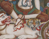 Avalokiteshvara Simhanada is the manifestation of Avalokitesvara and is thought to have the ability to heal diseases caused by nagas. The Simhanada Tantra and the Arya Avalokiteshvara Dharani text are the sources of this specific Arya Avalokiteshvara form, which belongs to the Kriya Tantra subcategory. Avalokiteshvara is seen in this form perched atop a roaring lion. The roar of the lion symbolizes the unafraid and strong voice of compassion that may dispel false beliefs and ignorance. Simhanada is frequently linked to the mantra "Om mani padme hum," which is thought to elicit Avalokiteshvara's blessings and foster compassion in the practitioner.