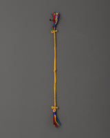 This handcrafted Tibetan Chupsel includes symbolic Vajra and Bell ends, making it an effective spiritual tool for Buddhist practice and altar arrangements. This sacred cord, traditionally used in Tantric rituals, represents the union of compassion and wisdom, both of which are essential in Vajrayana teachings.