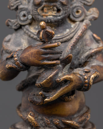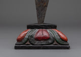 Crafted from bronze, this Ceremonial Ritual Dagger Phurba exemplifies the intricate artistry of Himalayan craftsmanship with detailed carvings and symbolic motifs. In both Buddhist and shamanic traditions, the Phurba is believed to channel divine energy, helping to stabilize sacred spaces and enhance the power of ritual practices. Its distinctive three-sided blade symbolizes the cutting through of ignorance, attachment, and aversion, essential steps toward spiritual clarity. The mahakala form carved into the handle represents protection and compassion, making this dagger not only a powerful ceremonial tool but also a meaningful symbol of transformative energy. A profound addition to any altar or meditation space, it invites spiritual empowerment and purification.