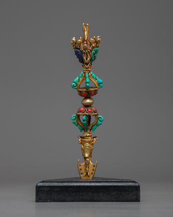 The dagger, which is inlaid with vivid turquoise and coral stones, represents protection and healing. These stones enhance the piece's aesthetic appeal and give it deep spiritual meaning, which makes it an effective tool for rituals.