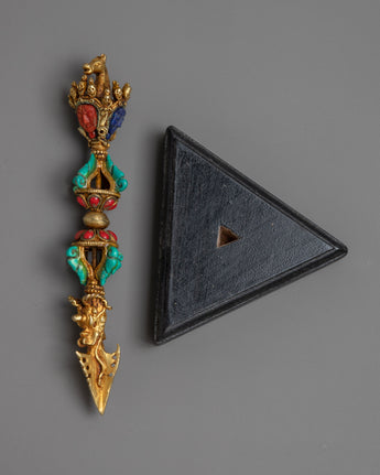 The 19-cm-tall Copper Ritual Dagger is beautifully crafted from copper and plated in 24k gold. The gold plating gives this exquisite piece a sacred quality and enhances its visual appeal. It blends traditional craftsmanship with spiritual symbolism.