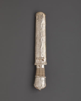 In Tibetan traditions, a Tibetan knife, also called a "phurba" or "kila," has cultural and symbolic meaning. The unique three-sided blade of this ceremonial dagger represents the victory over ignorance, desire, and aversion in Buddhism. Tibetan knives, which are adorned with elaborate carvings and frequently have a tripartite handle that represents different gods, are an essential part of religious rites, ceremonies, and spiritual practices. In addition to their spiritual significance, these knives might have practical uses in daily life, exhibiting in Tibetan communities a combination of deep cultural symbolism and usefulness.