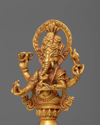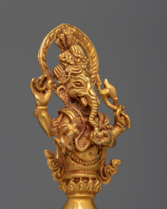 This unique Phurba is meticulously crafted, with intricate details on its copper body. The gold plating adds an authentic feel to the piece, making it meaningful and spiritual.