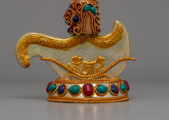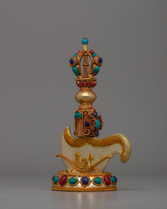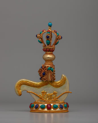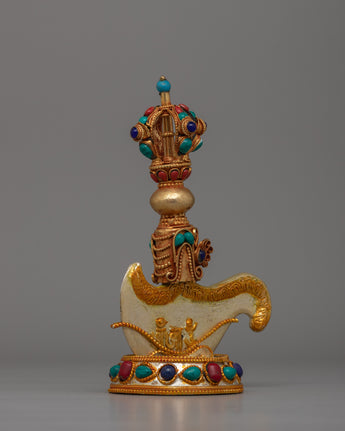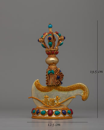 This Kartika, measuring 19.5 cm in height and 12.5 cm in breadth and weighing 0.31 kg, is both useful and aesthetically pleasing. Its outstanding design, which includes bright jewels and a gently curved blade, makes it a sought-after centerpiece for Buddhist altars or a special spiritual treasure. Incorporate this handcrafted Kartika into your rituals or display it to boost the spiritual energy in your environment.