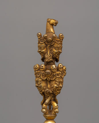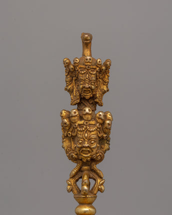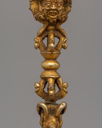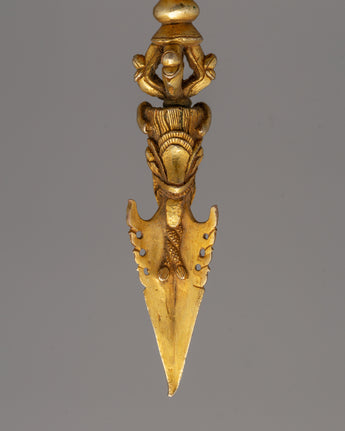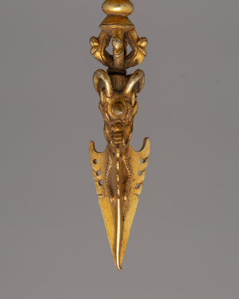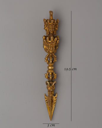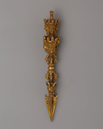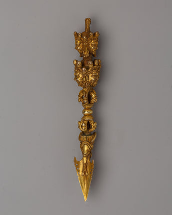 Gold-Plated Tibetan Phurba Dagger - Tibetan Vajrakila with Intricate Detailing