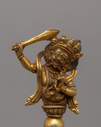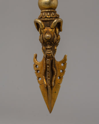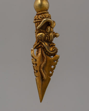 Gold-Plated Tibetan Phurba Ritual Dagger Vajrakila | Meditation, Spiritual Altar Artifact