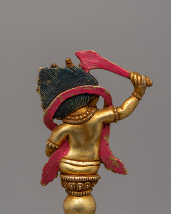 The carefully carved deity on the handle and the three-sided blade in the elaborate design represent the combination of compassion and wisdom. This Phurba reflects the essence of enlightenment and transformation, making it ideal for meditation, spiritual ceremonies, or as the centerpiece of your altar.