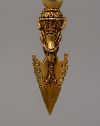Gold-Plated Tibetan Phurba Ritual Dagger Vajrakila - Meditation, Spiritual Altar Artifact