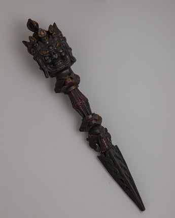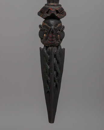 Hand-Carved Wooden Phurba Dagger | Tantric Ritual Tool for Meditation