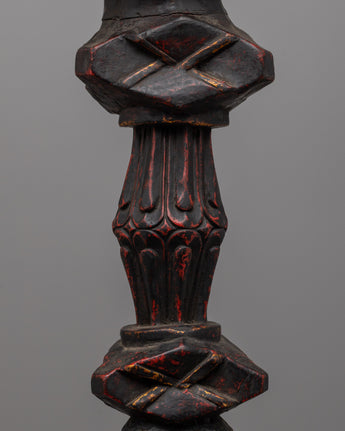This Phurba, carefully crafted, represents traditional artistry as well as spiritual importance. The dark timber finish showcases the handcrafted details, making it not only a ritual item but also a stunning centerpiece for your Buddhist shrine. Inspired by Padmasambhava's teachings, the Phurba promotes focused meditation, increases energy flow, and fosters a deeper connection to the holy. This relic is a true expression of religious craftsmanship, making it ideal for meditation, rituals, or as an artistic addition to your spiritual décor.