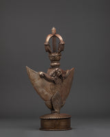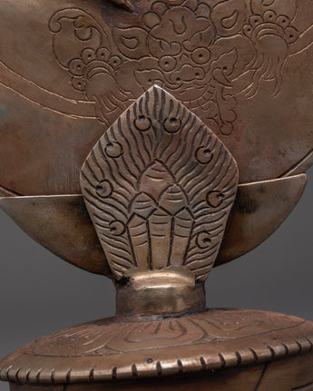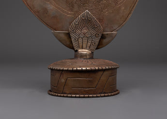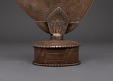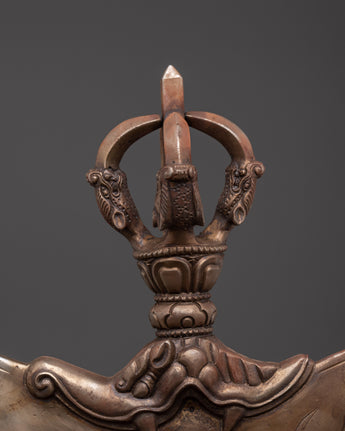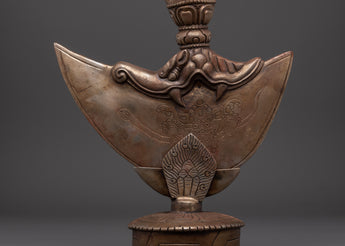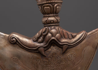 Meticulously crafted by skilled artisans, this Handcrafted Iron Kartika Knife embodies profound spiritual significance within Vajrayana practice. Its curved blade symbolizes the severance from samsaric cycles, representing liberation from the endless flow of suffering and rebirth. The half vajra handle grounds the knife firmly in Vajrayana’s core philosophy of indestructible wisdom and spiritual power. Weighing 3.49 kg, its substantial weight and size make it ideal for advanced Tantric rituals, spiritual offerings, or as a striking centerpiece on a consecrated altar. Beyond its physical form, this Kartika Knife stands as a powerful emblem of the practitioner’s dedication to transformation, cutting through ignorance and ego to embrace enlightenment. Whether used in sacred ceremonies or displayed as a symbol of spiritual commitment, it offers both profound meaning and authentic craftsmanship.