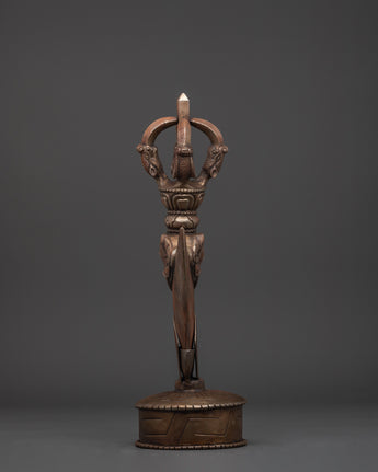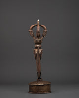 The Handcrafted Iron Kartika Knife with Half Vajra Symbol is a powerful tool deeply embedded in Vajrayana Buddhist rituals. Standing 39.5 cm tall and forged entirely from iron, this ritual chopper symbolizes the decisive cutting through ignorance, ego, and worldly illusions that hinder spiritual growth. The inclusion of the Half Vajra symbol amplifies its sacred significance, representing unbreakable wisdom and spiritual resilience. Perfect for practitioners seeking a meaningful and authentic ritual object, this Kartika Knife serves as a tangible reminder of the path to enlightenment and inner strength. Its craftsmanship and symbolism make it an essential addition to any sacred collection.