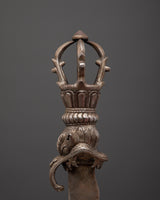 This Handcrafted Iron Sword is a magnificent example of history and craftsmanship, ideal for enhancing your altar decor, spiritual practices, or medieval collection. This ritual sword, which measures 52 cm in height and 9.5 cm in width, is intricately detailed, featuring a half Vajra at the base that symbolizes the indestructible essence of truth and spiritual strength. Whether employed in spiritual ceremonies, as part of a decorative display, or as a unique accessory for your home decor, this sword is both symbolic and practical, reflecting the rich traditions of Tibetan and Himalayan cultures.