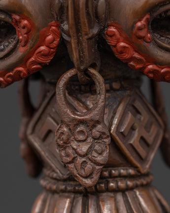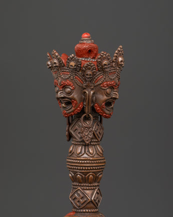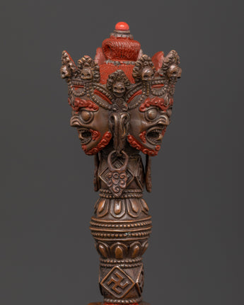 This Phurba Dagger, handcrafted with care, is a valuable addition to any spiritual collection. Whether you practice Tantric rituals or want to boost the energy of your holy area, its value goes far beyond its artistic design. The oxidized copper structure adds an earthy, mystical element, making it a unique and attractive addition to any house, meditation area, or altar.