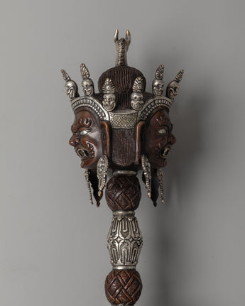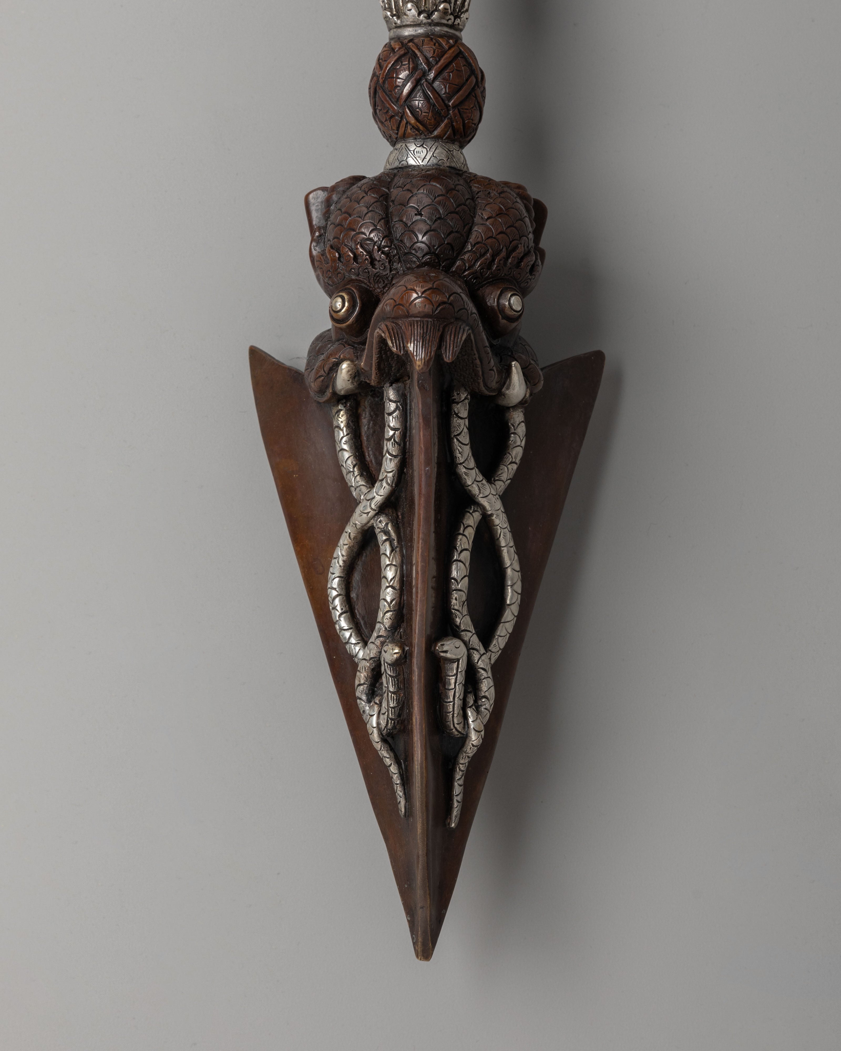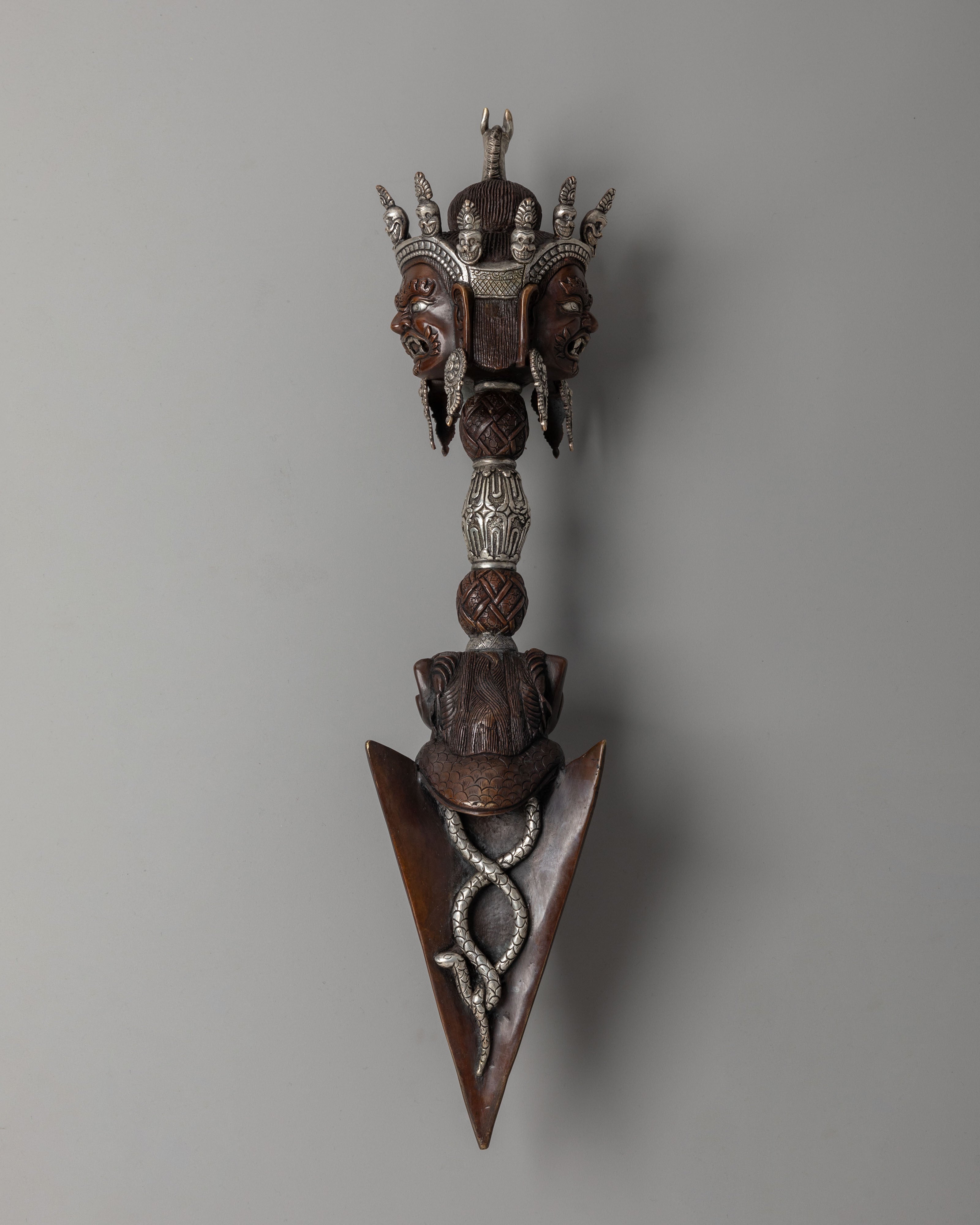 This meticulously handcrafted Phurba serves as both a powerful ritual instrument and an impressive visual statement. Perfect for altars, meditation rooms, or curated spiritual collections, it merges authentic Tibetan craftsmanship with striking visual presence. The substantial construction and detailed artistry make it an ideal choice for devoted practitioners, serious collectors of Himalayan traditions, or those drawn to meaningful sacred objects. Display it as a ceremonial tool or revered home accent—either way, this Phurba captures the transformative spirit of Tibetan spiritual heritage and conscious practice.