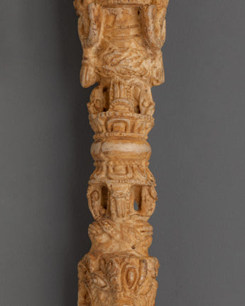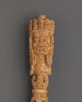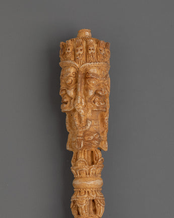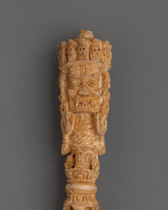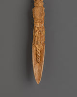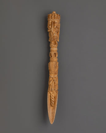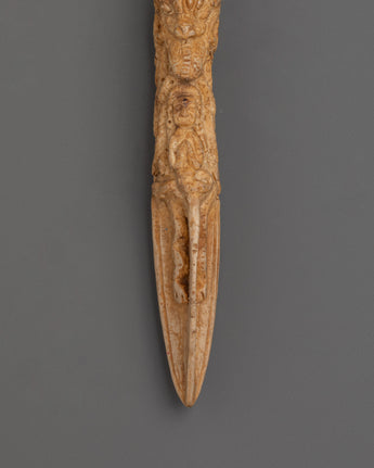 Embark on a journey of spiritual empowerment with this Himalayan handcrafted Tantric ritual dagger, known as a Phurba. Measuring 34.5 cm and weighing 0.28 kg, it is expertly carved from ethically sourced Yak Bone, reflecting the deep Tibetan tantric tradition. This sacred tool symbolizes protection and transformation, making it an essential addition to meditation altars, ritual offerings, or as a meaningful decor piece. Its balanced design channels protective energy and spiritual harmony, serving as a powerful conduit for focused intention. Whether used in personal practice or ceremonial settings, this Phurba helps cultivate inner strength and safeguard your environment with authentic Tibetan wisdom.
