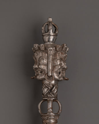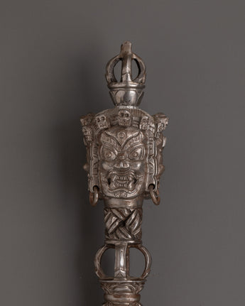 Handcrafted Three-Faced Iron Phurba Dagger | Tibetan Buddhist Altar Dagger for Practice