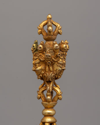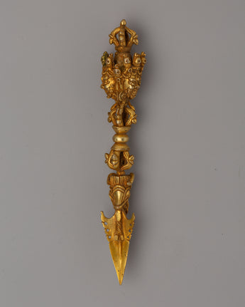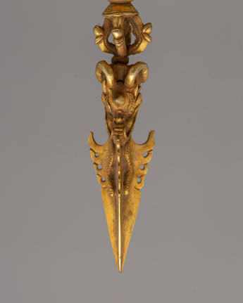Tibetan Gold Phurba Dagger - Ritual Tool for Spiritual Practices