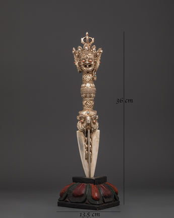 Handmade Phurba Buddhist Dagger | Silver-Plated Tantric Meditation Dagger