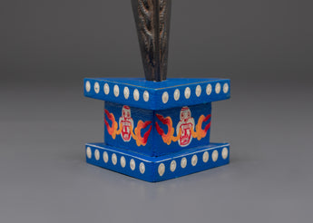 This Himalayan Handmade Three-Sided Dagger, known as a Phurba, is a sacred ritual tool used in Tibetan Vajrayana practices for protection, grounding, and spiritual clarity. Measuring 22.5cm in height and handcrafted from zinc, this dagger is carefully adorned with acrylic color details that enhance its spiritual symbolism. Lightweight at 0.31kg, it’s ideal for altar placement, ritual use, or symbolic display.