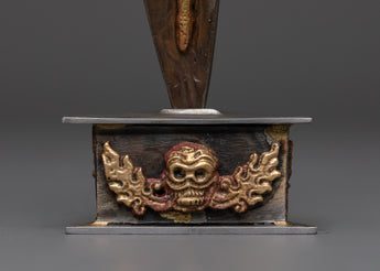 Crafted from bronze, this Himalayan Phurba balances both artistry and spiritual function. Weighing 0.58 kg, it offers a solid, authentic feel that enhances its use in rituals. The Phurba’s three-sided blade represents the overcoming of the three poisons: ignorance, attachment, and aversion, making it an essential artifact for deepening mindfulness and spiritual growth. Whether displayed as a sacred object or used in personal practice, this Phurba carries profound cultural and energetic significance.