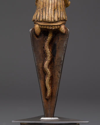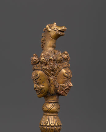 The Himalayan Phurba is a sacred ritual dagger revered in Tibetan Buddhism and Himalayan traditions. Measuring 25.5 cm in height and 7 cm in width, this powerful spiritual tool is expertly handcrafted to aid in meditation, energy clearing, and protection against hostile forces. Known as a symbol of transformation and spiritual power, the Phurba helps practitioners focus their intent during rituals and ceremonies.