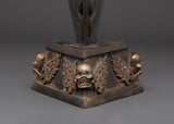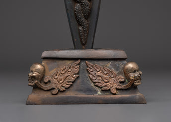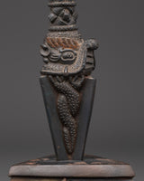 The Tantric Dagger, meticulously made with complex patterns, utilizes energy while also representing protection and transformation. The iron blade is designed to cut through negative energies, while the copper and brass components strengthen the spiritual connection. The dagger has been decorated with symbolic symbols such as skulls, which represent the eradication of negative influences and the promotion of spiritual development.