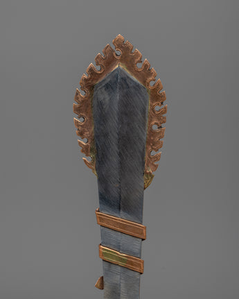 This Manjushree Sword, which stands 26 cm long and weighs 0.228 kg, is a striking relic in addition to being a potent spiritual tool. It is perfect for altars or ceremonial use because of its mix of polished copper and iron, which represents strength and purity. This sword honors Manjushree's everlasting teachings while encouraging practitioners to seek intellectual and spiritual clarity with its small yet powerful design.