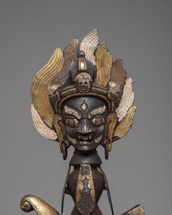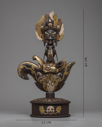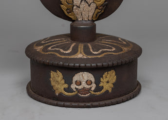 The Iron Kartika Knife with Stand is perfect for displaying in a meditation space, as part of a personal collection of spiritual artifacts, or as a standout piece in a home or office. It not only serves as a decorative item but also as a reminder of the path to enlightenment and liberation. Its presence in any setting is certain to elicit admiration and contemplation, making it an important addition for those who value the intersection of artistry, spirituality, and traditional craftsmanship.